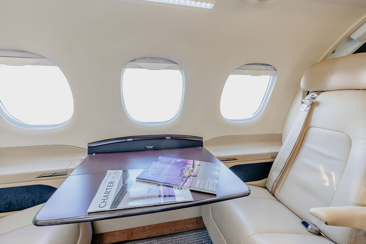 Inside, the Phenom 100 features a spacious cabin with club seating for four, creating a relaxed, executive atmosphere where you can work, connect, or simply enjoy the flight. A fully enclosed belted lavatory adds privacy and comfort, making it well-suited for longer flights or multi-stop itineraries. And with ample baggage space for skis, golf clubs, or oversized luggage, this jet is ready for both business and adventure.